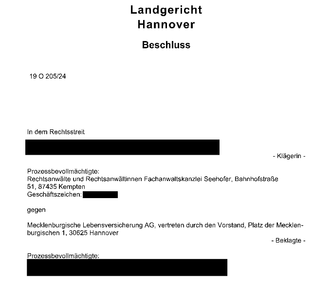 Die Erfolge bei der Rückabwicklung der Basisrentenverträge gehen weiter und dies auch vor Gericht: Konkret ging es um einen Basisrentenvertrag der Mecklenburgischen Lebensversicherung–AG aus dem Jahr 2008, den unsere Mandantin abgeschlossen hatte. Der Basisrentenvertrag war anfänglich mit einem Betrag von 220,50 € monatlich bespart worden und dann von unserer Mandantin im Jahr 2015 auf 50,00€ […]