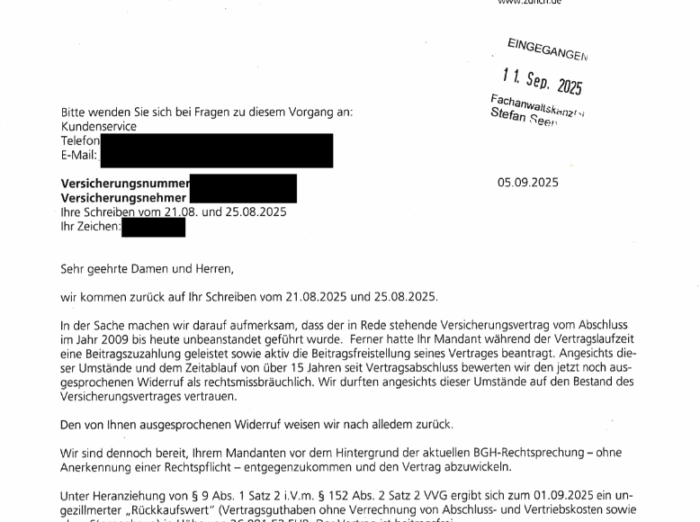 Die mittlerweile über 10-jährige Erfahrung der Fachanwaltskanzlei Seehofer im Bereich des Widerrufs von Lebens- und Rentenversicherungen sowie nunmehr auch Basisrenten- bzw. Rürup-Verträge zeigt weitere Wirkung bei den Versicherungen: Unserer Kanzlei ist es gelungen, innerhalb von wenigen Wochen ohne ein Gerichtsverfahren die Rückabwicklung einer Basisrente zu erreichen, die unser Mandant im Jahr 2009 bei der Zurich […]