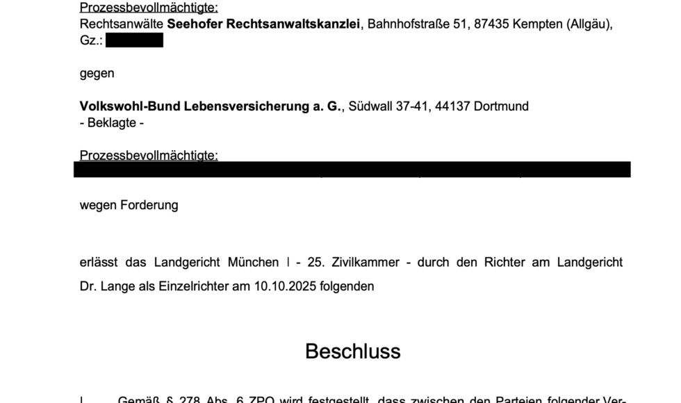 Nächste Erfolgsmeldung im Zusammenhang mit der Rückabwicklung eines Basisrentenvertrages: Die Fachanwaltskanzlei Seehofer hat eine vollständige Rückabwicklung eines von unserer Mandantin im Jahr 2009 beim Volkswohlbund abgeschlossenen Basisrentenvertrages mit der Bezeichnung „SAFE“ erreicht. Besonderheit dieses Falles war, dass unsere Mandantin bereits seit September 2014, also über 10 Jahre lang eine Rentenzahlung vom Volkswohlbund erhielt und zwar […]